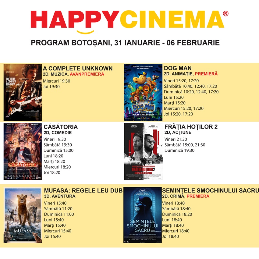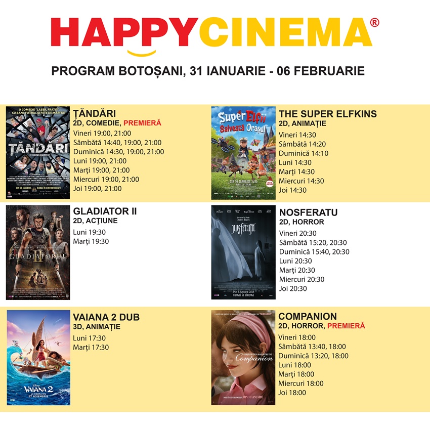 Filmele difuzate de Happy Cinema în săptămâna 31 ianuarie – 6 februarie 2025.