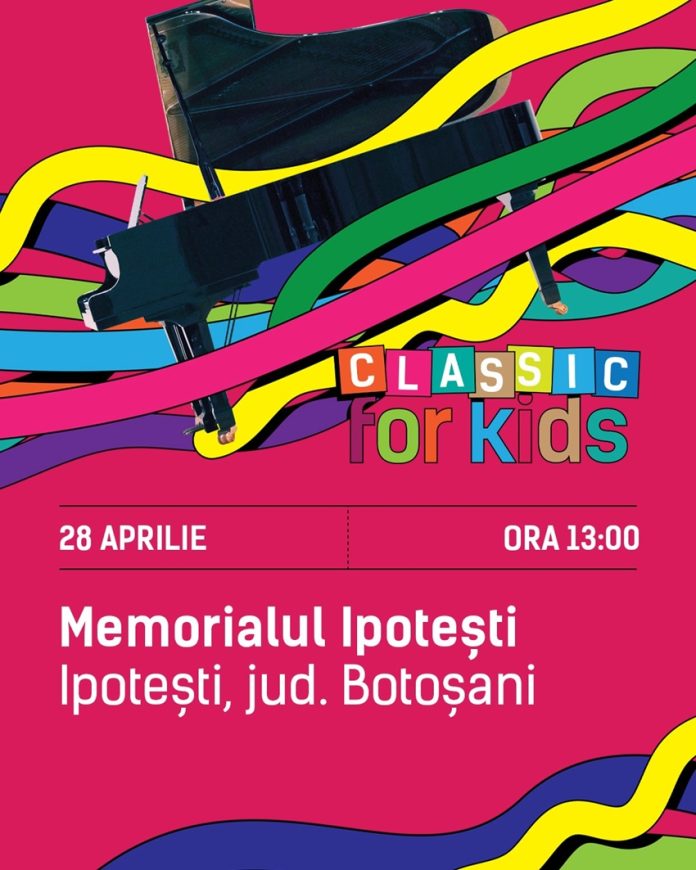 Unul dintre ateliere va avea loc la Ipotești pe data de 28 aprilie, începând cu ora 13.00. Înscrierile se pot face trimițând un mesaj cu tema „Classic for Kids” pe adresa Memorialului Ipotești: m.ipotesti@gmail.com până pe data de 26 aprilie.