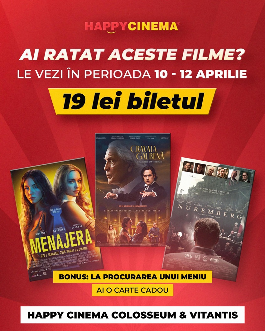 Biletele sunt disponibile la casele de bilete și online, pe site-ul Happy Cinema: www.happycinema.ro.